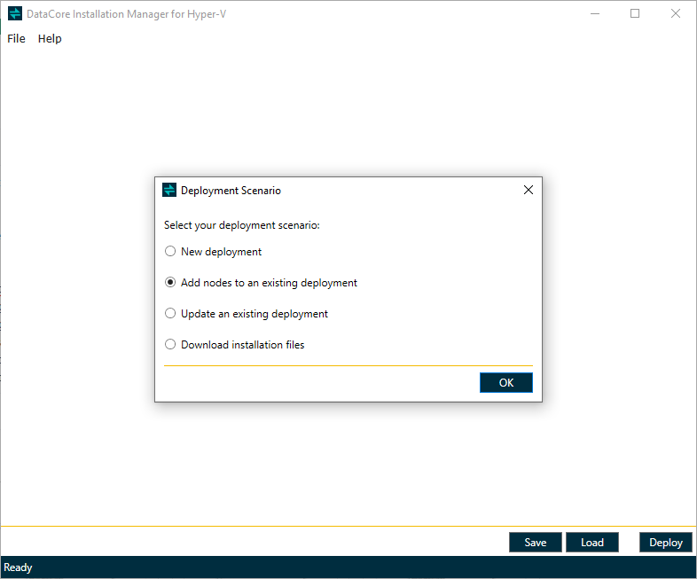 - Select Add nodes to an existing deployment and then click OK.