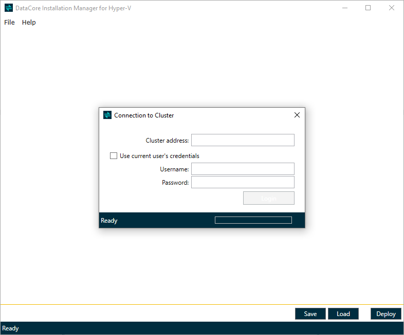 - Enter the name or IP address of the cluster and an account to connect to the cluster.