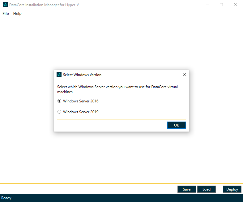 - Select Windows Server 2016 or Windows Server 2019 and click OK.