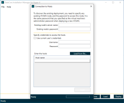 - Enter the list of host names or IP addresses and the account credentials to connect to all hosts. Or, the list of hosts can be loaded from a file. The file must contain the names or IP addresses of the hosts; each entry must start on a new line.