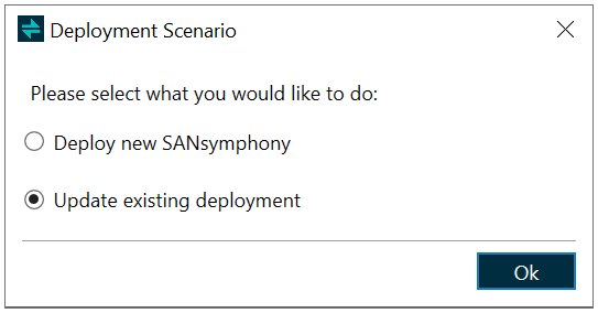 If DataCore Installation Manager for vSphere has determined that an existing installation of DataCore SANsymphony exists in the datacenter you will have the option to upgrade the version of DataCore SANsymphony to a newer version.