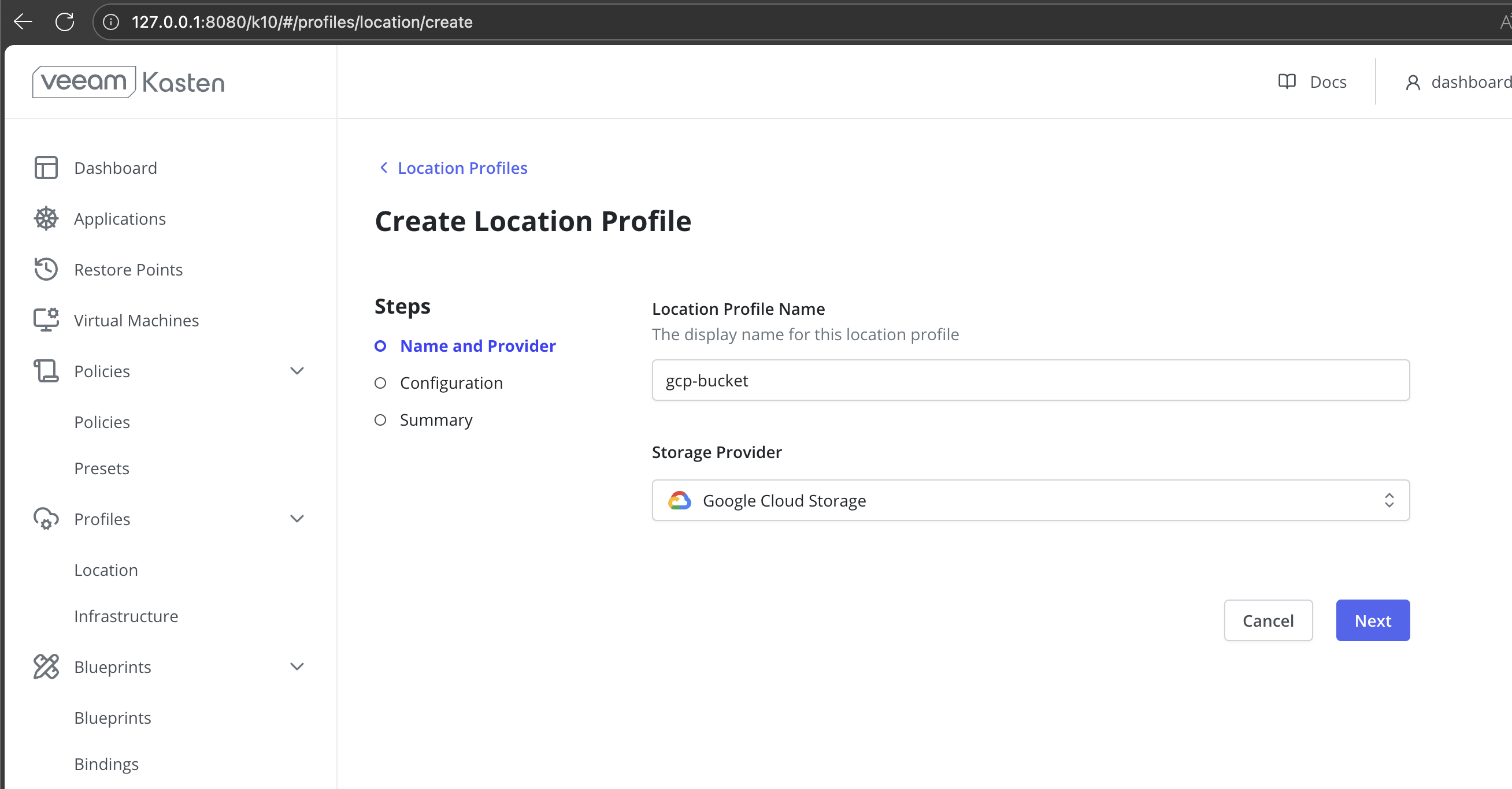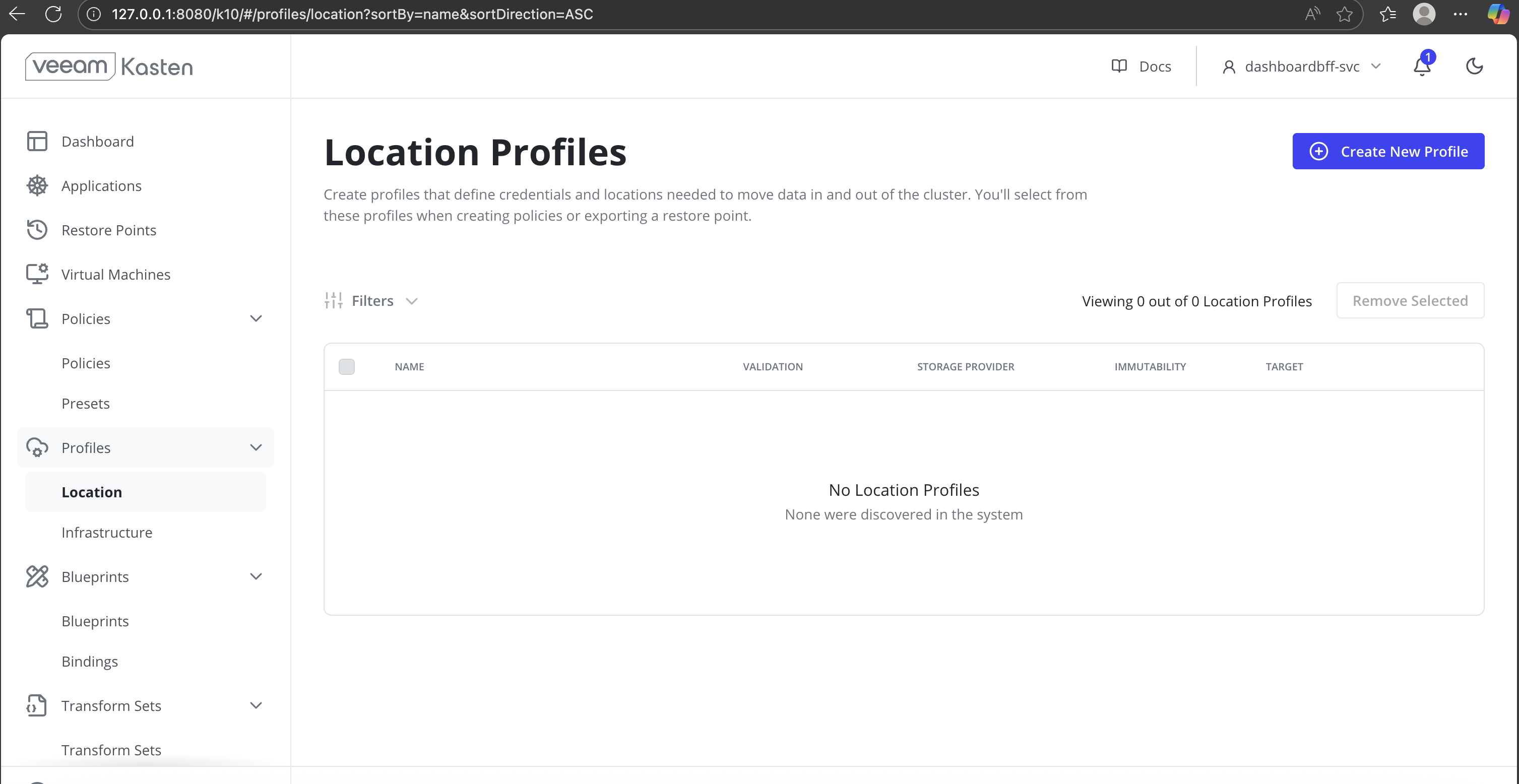 Access the Veeam Kasten Dashboard