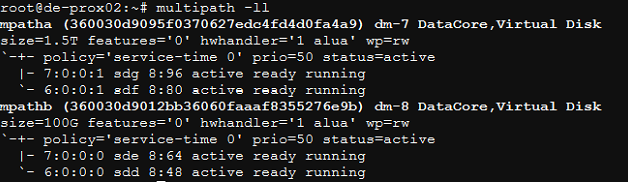 Refer to the DataCore Linux Host Configuration Guide for the relevant settings and the adjustments for the PVE in the iSCSI Multipath document.