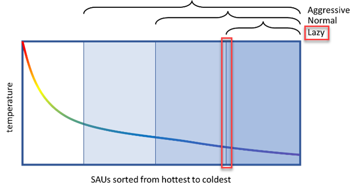 - Lazy: This migrates up to 25 percent of the coldest SAUs of a LD to the CO storage.