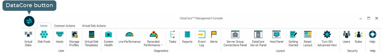 Click the DataCore button in the top-left corner of the DataCore Management Console and select About DataCore Software from the menu.