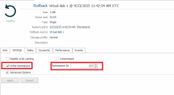 When you create a rollback of an NVMe namespace virtual disk, the NVMe Namespace checkbox is selected by default, making the rollback NVMe-enabled. You can manually select or clear this checkbox for each rollback after it is created.