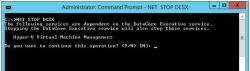 1. Enter NET STOP DCSX. A message will appear that the dependent services will also stop. Confirm to continue by entering Y.