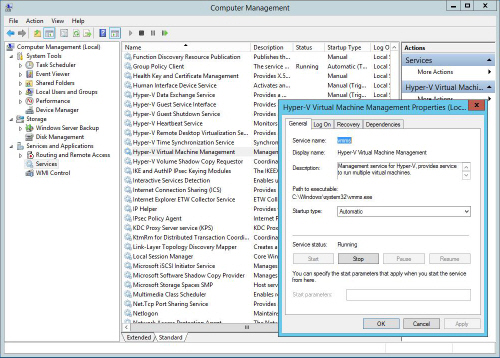 1. On the HCI node, find the service name of the application. The service name is typically found in the Properties dialog box of the service in Computer Management > Services. The service name of the Hyper-V service is VMMS.