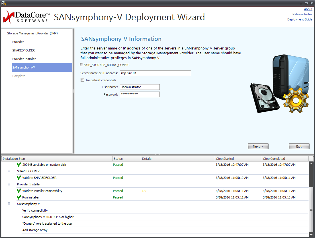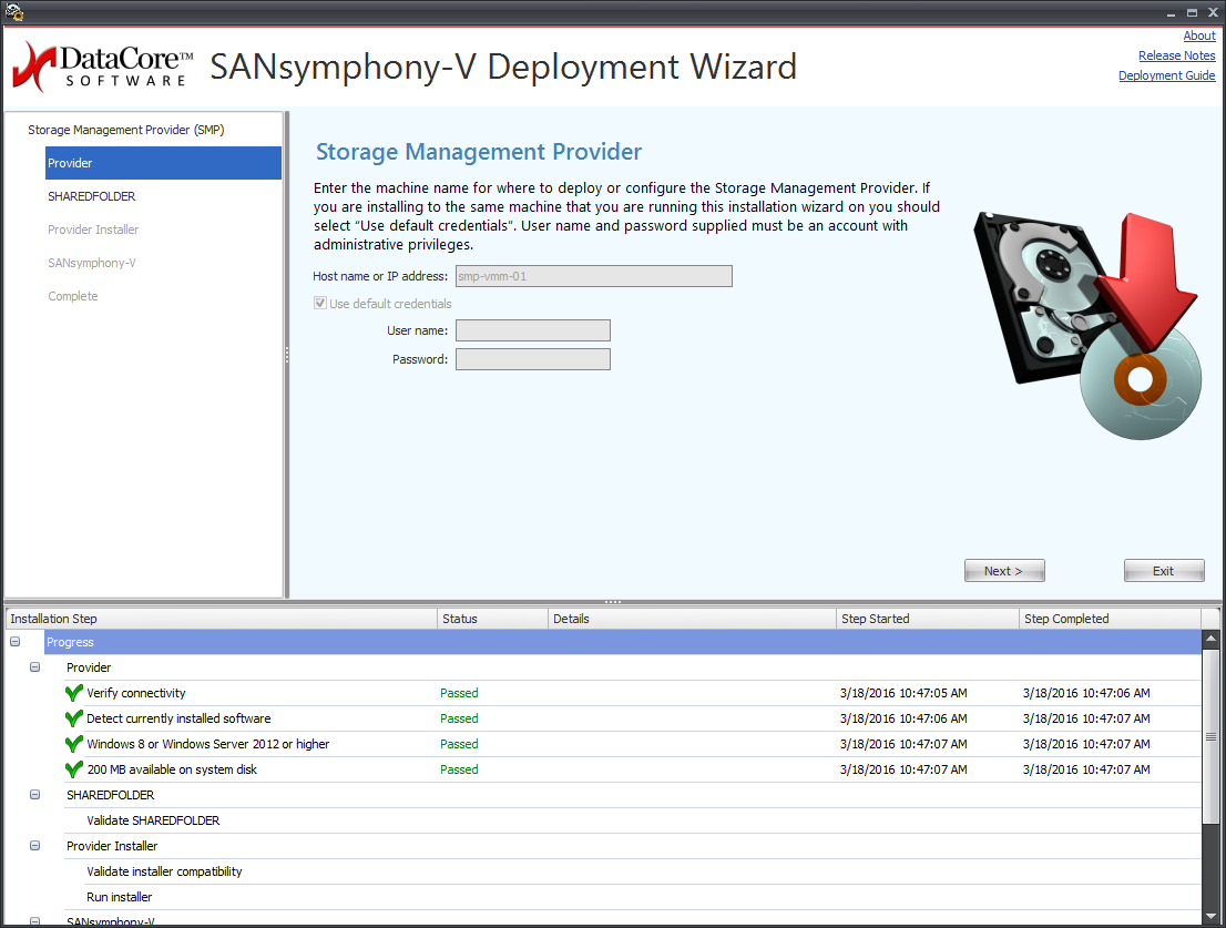 The DataCore Deployment Wizard simplifies installation and configuration of DataCore Storage Management Provider.
