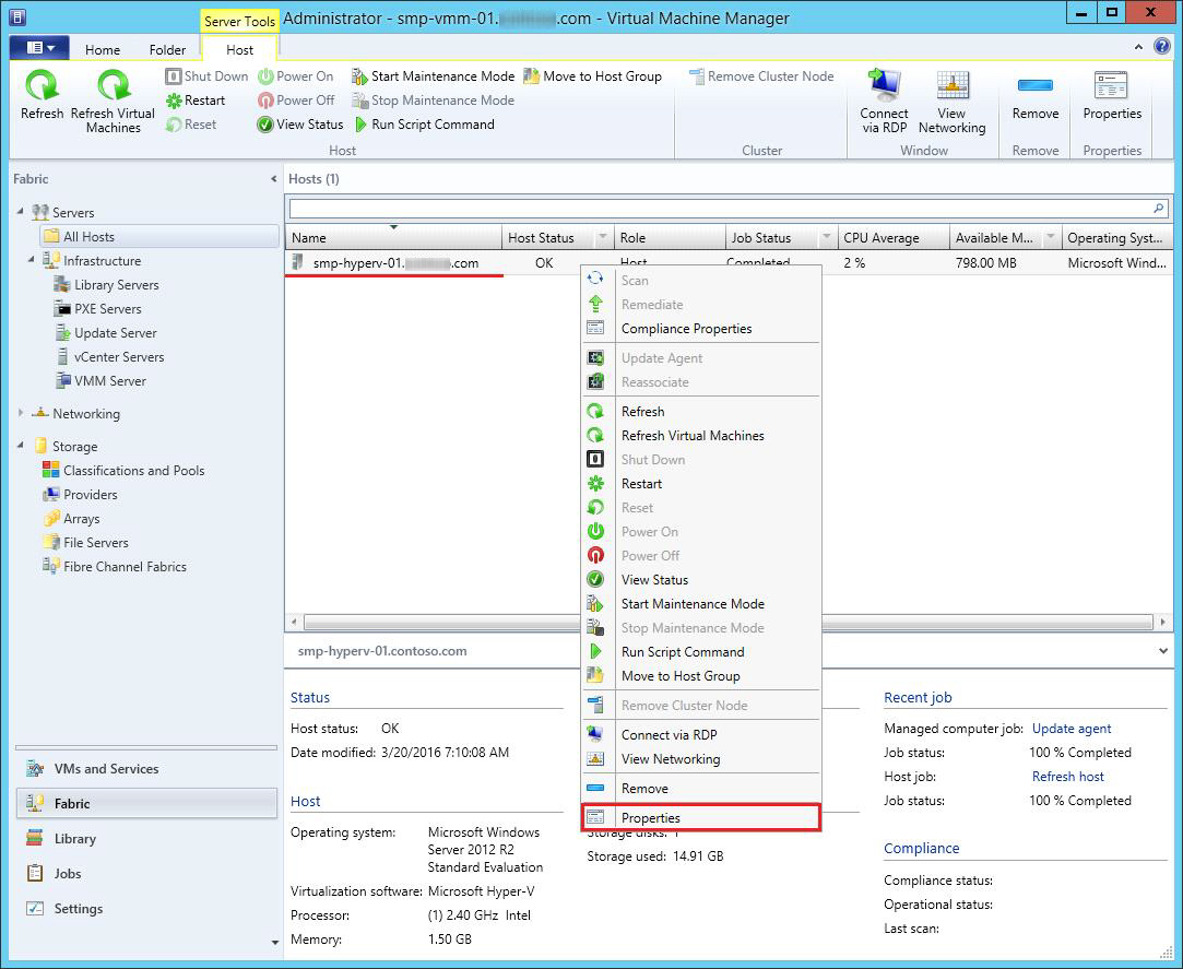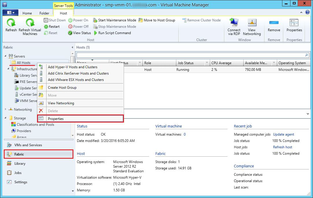 1. In SCVMM, click Fabric Resources in the Home tab to navigate to the Fabric workspace.