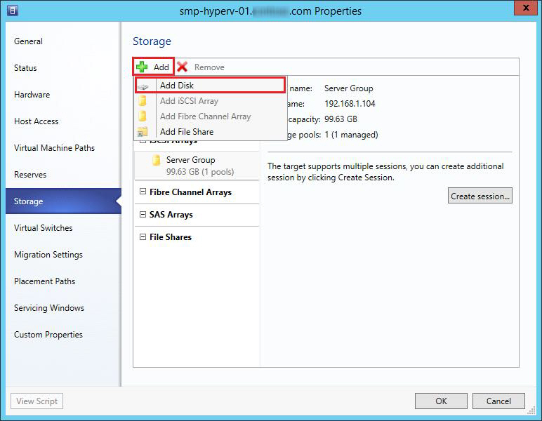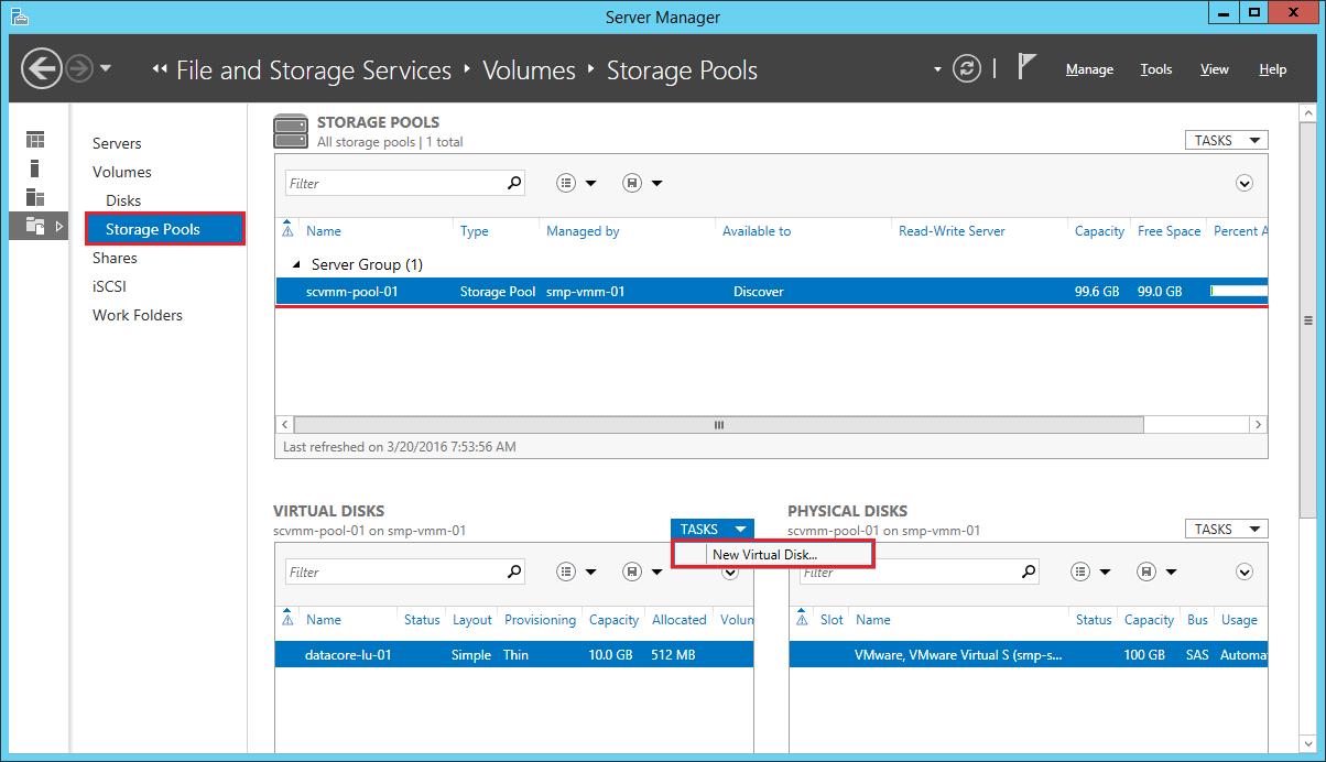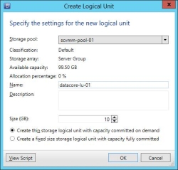• This topic contains brief instructions for provisioning DataCore SANsymphony storage in Microsoft System Center Virtual Machine Manager (SCVMM) and Windows File and Storage Services. Instructions are provided only to facilitate and expedite storage provisioning and are not intended to replace Microsoft Windows documentation. These instructions are applicable to System Center 2012 SP1. Refer to Microsoft Windows documentation for additional information or later versions of the software.