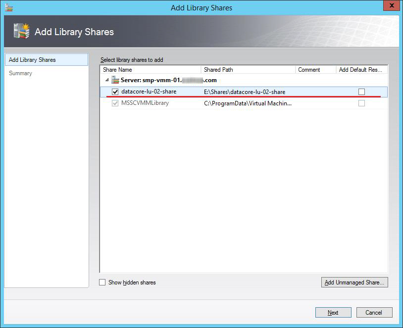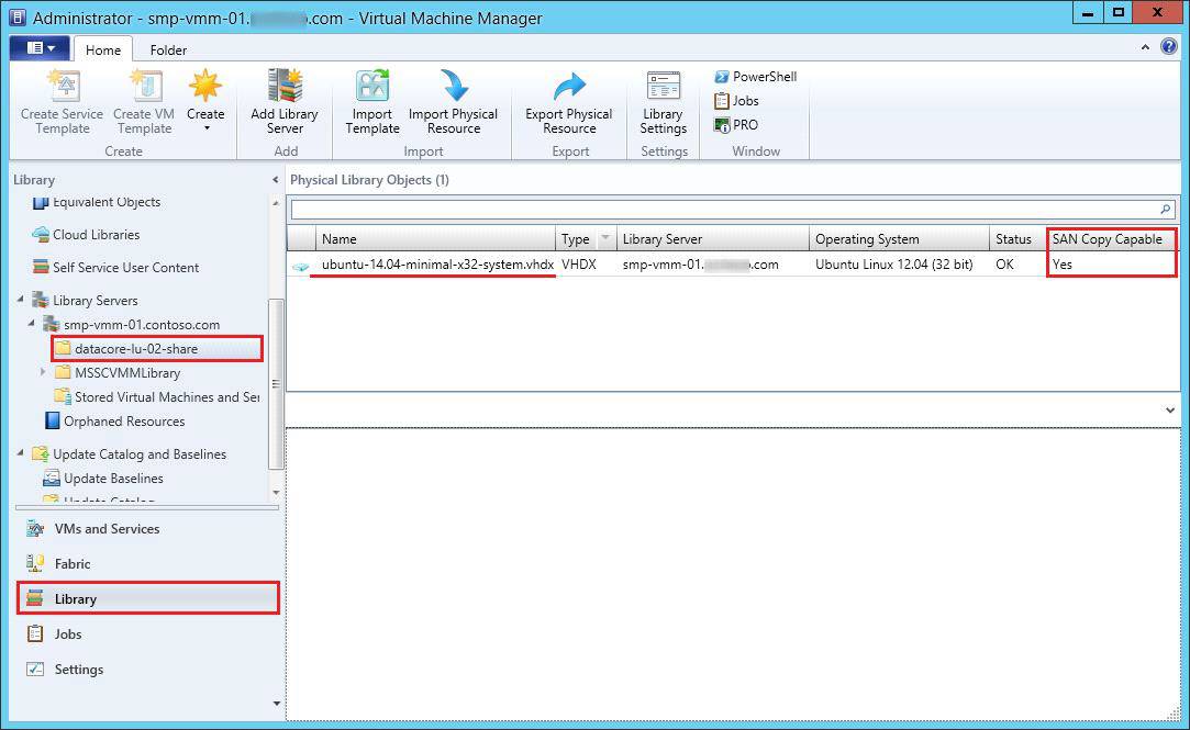 1. After a logical unit is added to the SCVMM Library Server as a library share, copy the virtual hard disk to use to the library share.