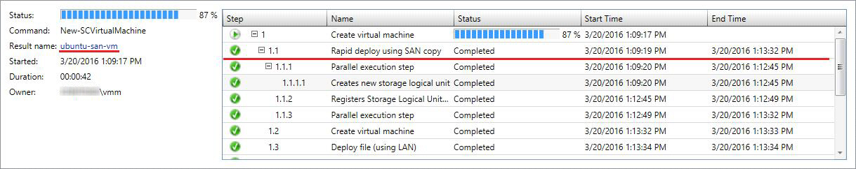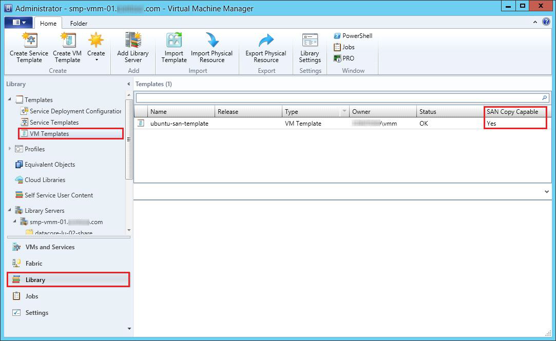 SCVMM has the ability to create both network copy and SAN copy-capable virtual machine templates. SAN copy-capable implies the use of the SAN Subsystem to provision the target virtual machine through a process known as rapid virtual machine provisioning. For more information on rapid virtual machine provisioning, see Rapid Provisioning of Virtual Machines Using SAN Copy Overview.
