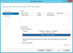 3. In the New Share Wizard, verify the volume location and click Next.