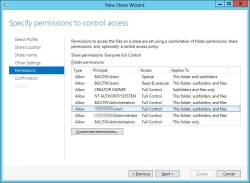 4. Customize permissions on the share to allow access for the SCVMM Library Server.