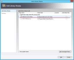 7. In the Add Library Shares dialog box, select the check box next to the share representing the DataCore SANsymphony virtual disk and click Next.