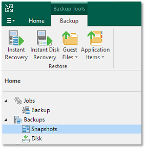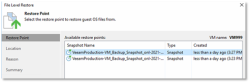 - In the Veeam Explorer, select a recovery point based on the snapshots. Under the Backup tab, double-click the Snapshots option to view the corresponding VM and the available backup snapshots.