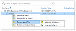 - Right-click the VM and select the Restore Guest Files drop-down. Two options are displayed.