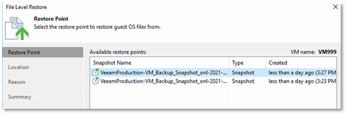 - Recover from a Snapshot Recovery Point Not Created by a Backup Job