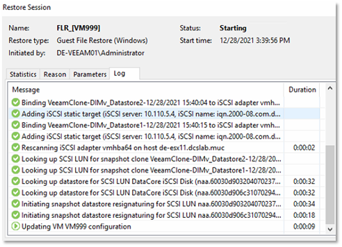 These rollbacks are treated as ordinary snapshots by the Veeam application (VBR), allowing you to perform every function that can be performed on ordinary snapshots. Example: Recovering virtual machines (VM), recovering guest data, etc.
