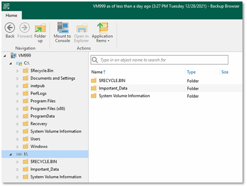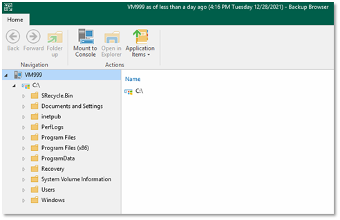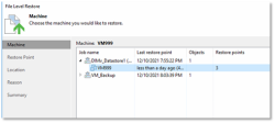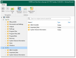 - Once the log is closed, the selected VM is displayed in the Veeam Backup Browser with the options to recover the data.
