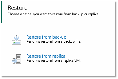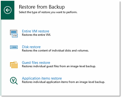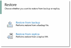 - Click the applicable rollback point under the Restore option to view the recovery methods. Select the Restore From Backup option to view the restore options.