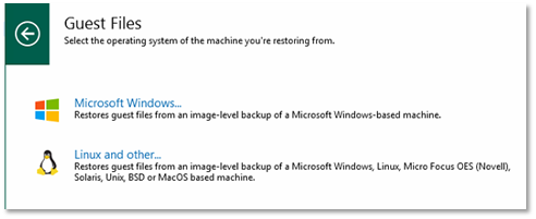 - Select the Microsoft Windows option as the operating system. The File Level Restore options are displayed.