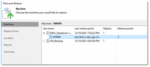 Once the log is closed, the selected VM is displayed in the Veeam Backup Browser with the options to recover the data.