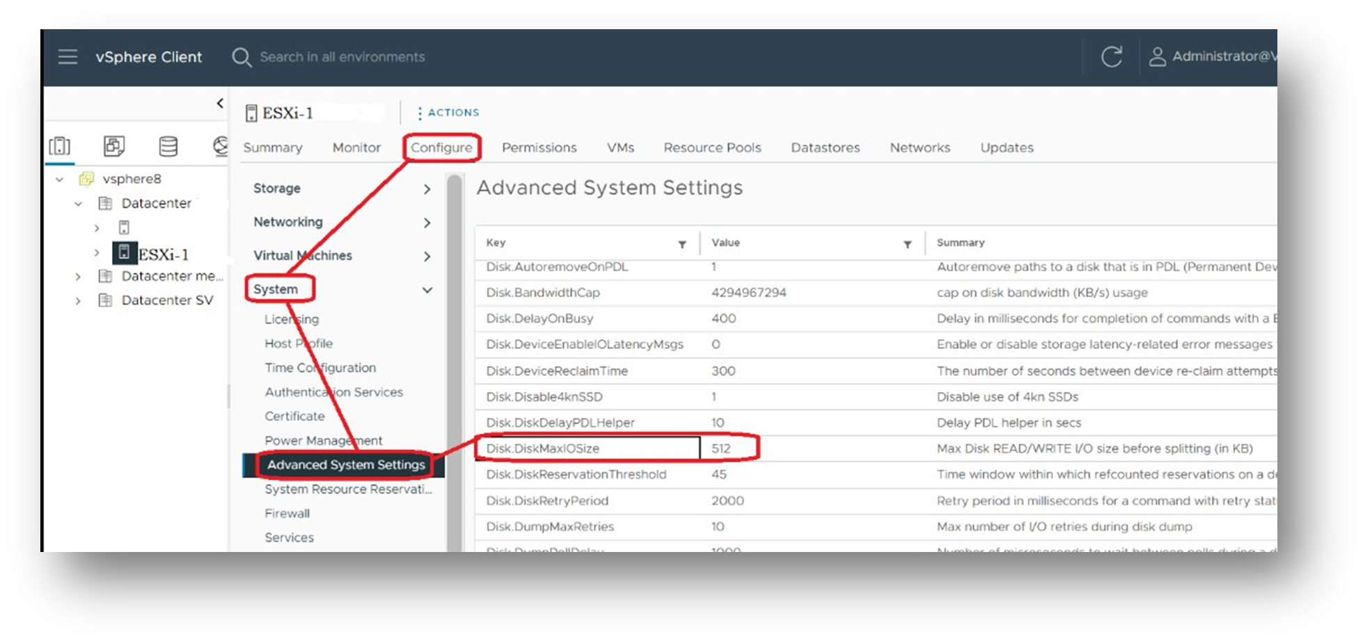 Earlier releases of ESXi may have used different settings than the ones listed here, therefore if when upgrading an ESXi host there are previously configured, DataCore specific settings that are no longer listed, leave the original setting’s value as it was.