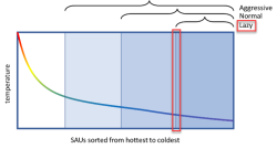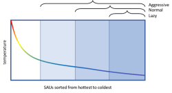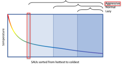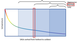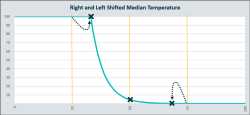 The following graph depicts a plateau condition, where the Lazy median temperature has right shifted, and the Aggressive median temperature has left shifted.