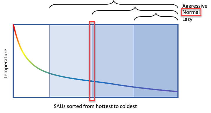 - Normal: This migrates up to 50 percent of the coldest SAUs of a LD to the CO storage.