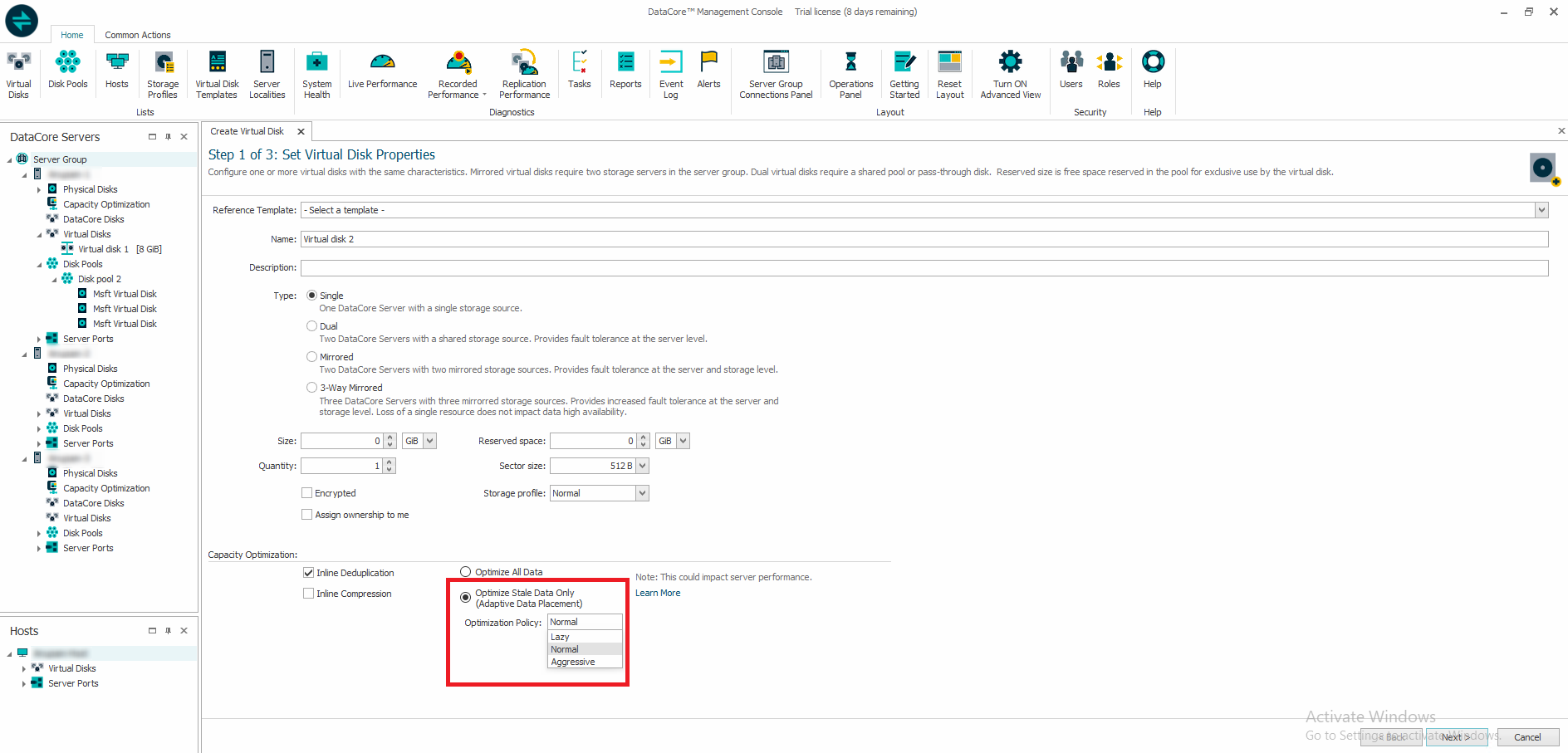 The Optimize Stale Data Only feature (also referred to as Adaptive Data Placement) has been introduced to enhance Inline Deduplication and Compression by allowing DataCore SANsymphony's auto-tiering to take full advantage of the full range of storage devices in a pool. This feature migrates the stale (or cold) data of a vDisk to the CO subsystem and leaves the hot data of the vDisk on high-performance disks using auto-tiering, further increasing cost efficiency of the overall solution.