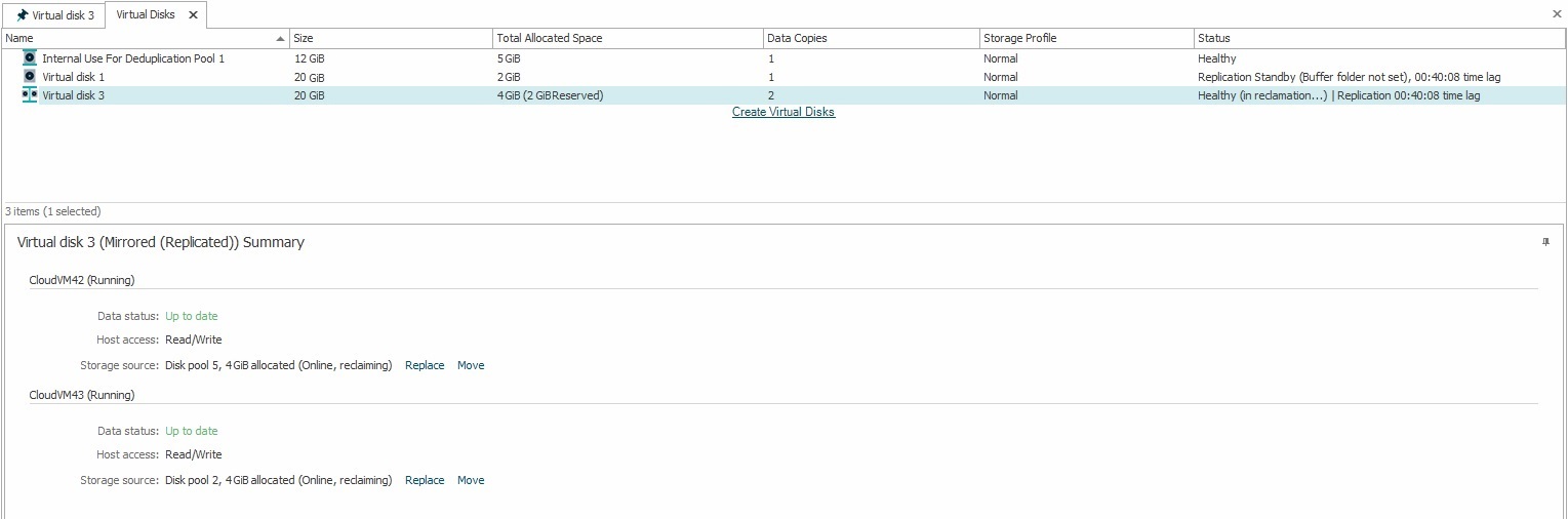 - Space can be reclaimed on any type of virtual disk (single, dual or mirrored). Virtual disks must be online and if mirrored or dual have a data status of up-to-date.