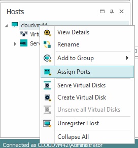 - In the Hosts panel, right-click the host and select Assign Ports to open the Assign Ports to Host page.