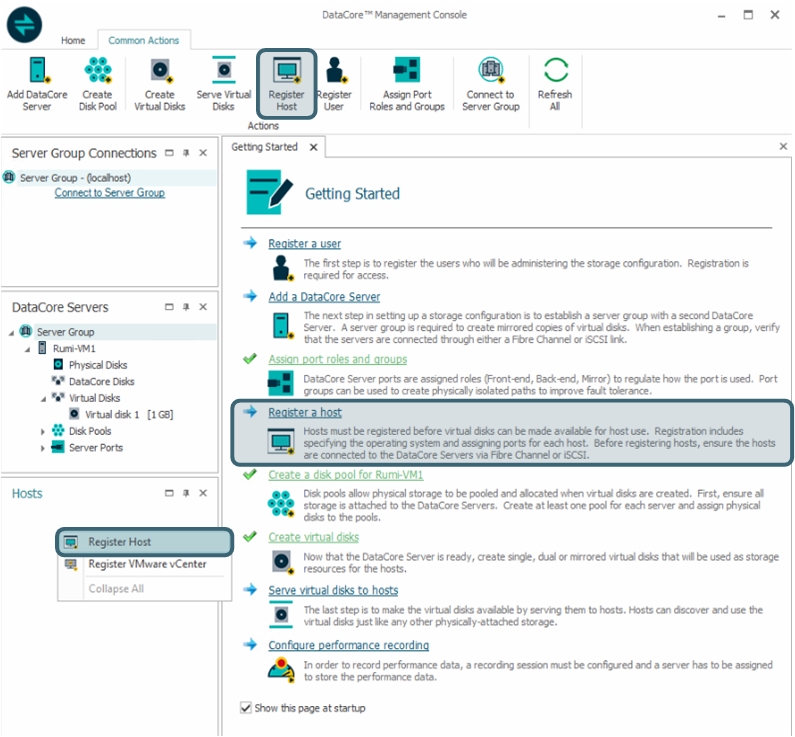- In the Ribbon > Common Actions tab, click Register Host to open the Register Host dialog box.