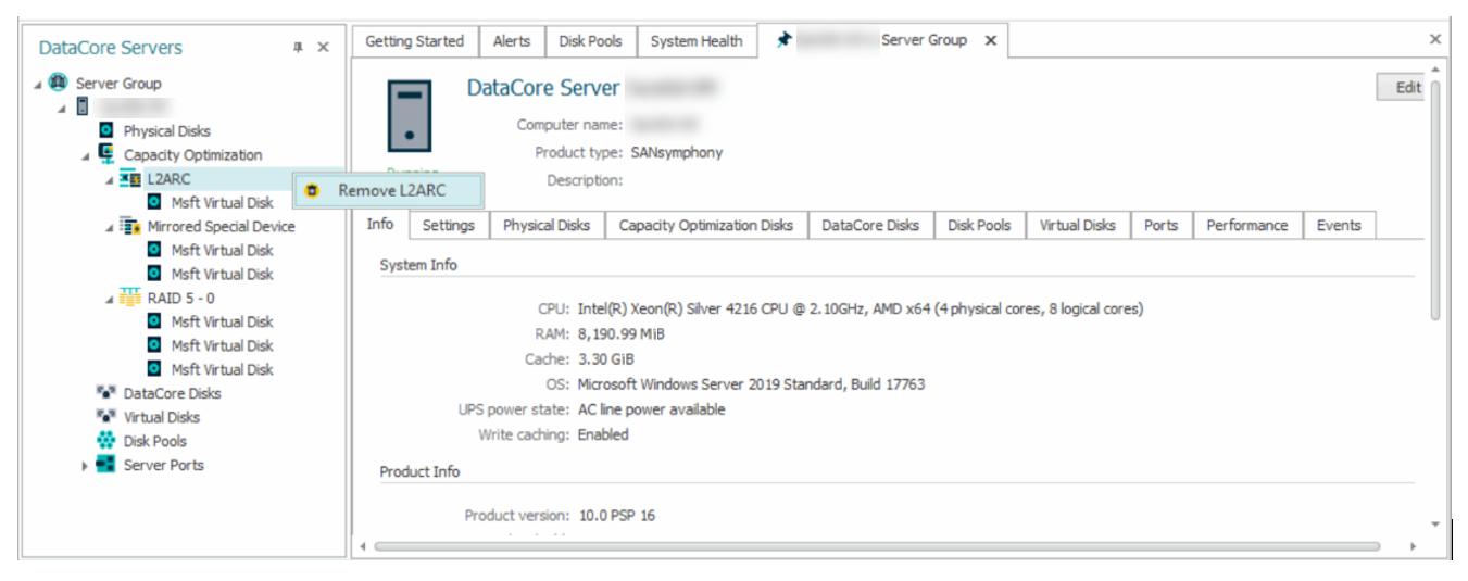 Right-click L2ARC, and select Remove L2ARC.