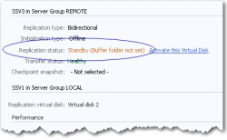 All information (including buffer size, time lag, and transfer rate) for the replication is displayed on the Replication tab, see Virtual Disk Details and List for more information. Also see Replication Status.
