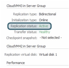 Detailed replication information can be viewed in the Virtual Disk Details page>Replication Tab. See Replication Status for replication and transfer status descriptions.