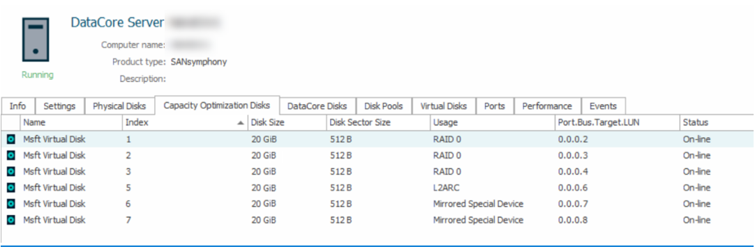 - How many virtual disks from the server are configured to use Capacity Optimization