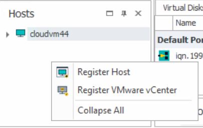 - Right-click in the Hosts panel and select Register VMware vCenter.