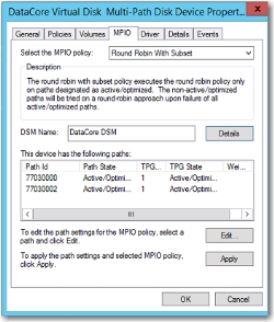 - On the MPIO tab, click Apply to save any changes, then click OK to close the Disk Properties dialog box.