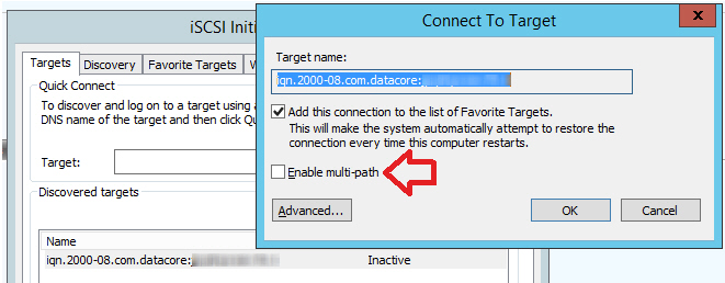 - When making connections, do not select the Enable multi-path check box.