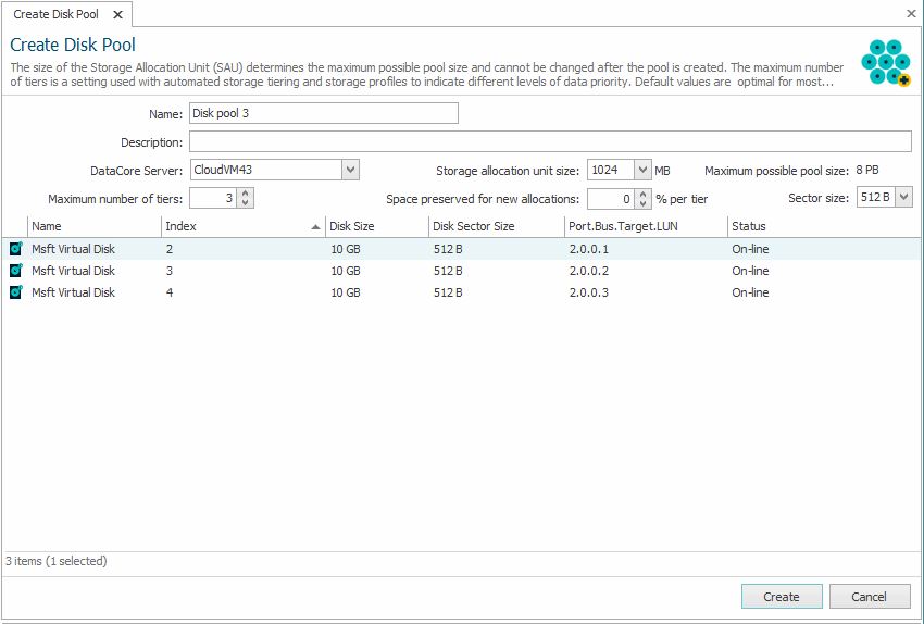 Pool to open the Create Disk Pool