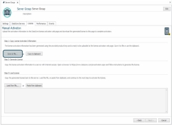- In the Manual Activation page, save the encrypted license information by clicking Save to file.... and choose the location of the file. The file should be transported to a computer with Internet access. Do not close the wizard.