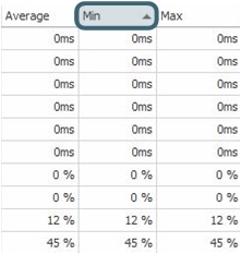 By default, the data (Last, Average, Minimum, Maximum) in the counter table is sorted by type and then by value. If the value is rounded, the actual value will be displayed in a tooltip.