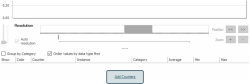 - To manually set the resolution, clear the Auto resolution check box and use the slide bar to select a different value. To view data with a finer resolution, select a shorter time period.