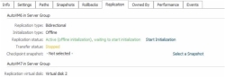 - Click Start offline initialization. The replication will show that the replication is active and the offline buffer is initializing. The percentage complete will be displayed.