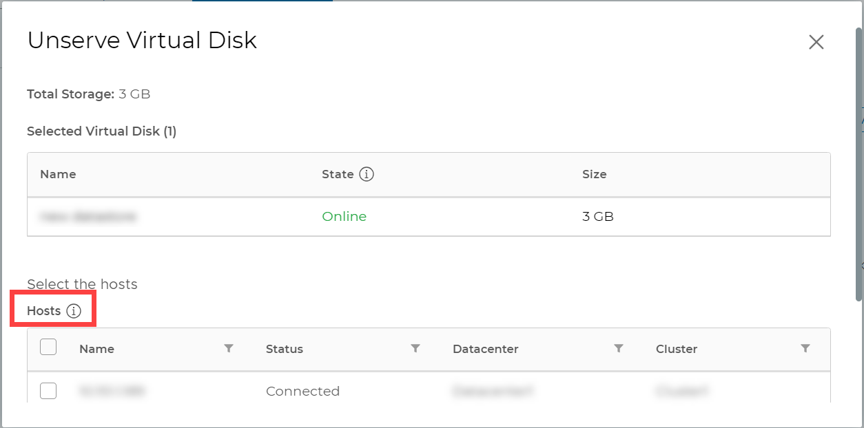 - The Unserve Virtual Disk feature has been enhanced to display only those hosts that are served to the selected Virtual Disk.