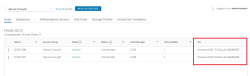 The DataCore Hosts table displays the VMware ESX version, including the OS and build number, in the ESX Version column. This update enhances visibility by providing more detailed versioning information for better management and troubleshooting of ESX hosts.